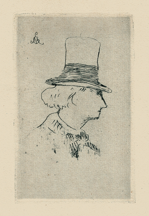 Baudelaire im Profil nach rechts mit hohem Hut