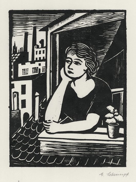 Mädchen, aus einem Dachfenster schauend (Mädchen am Fenster)