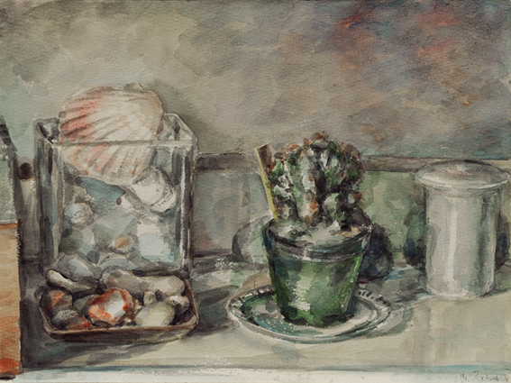 Stilleben mit Vase und Schneckenhaus