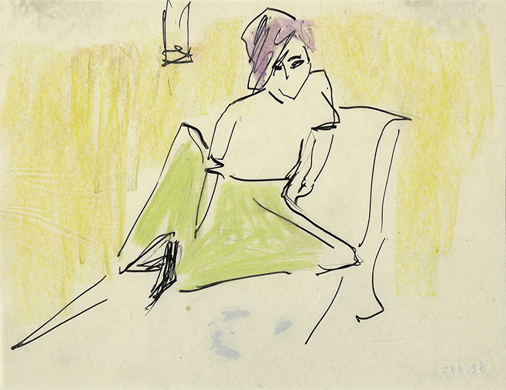 Sitzende im grünen Rock