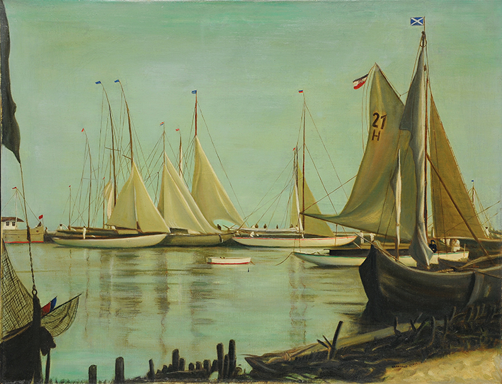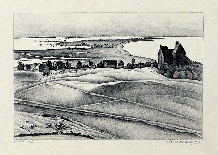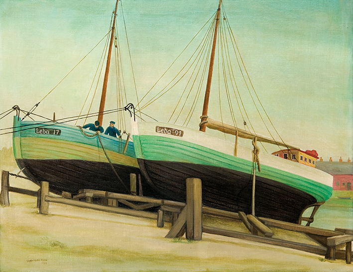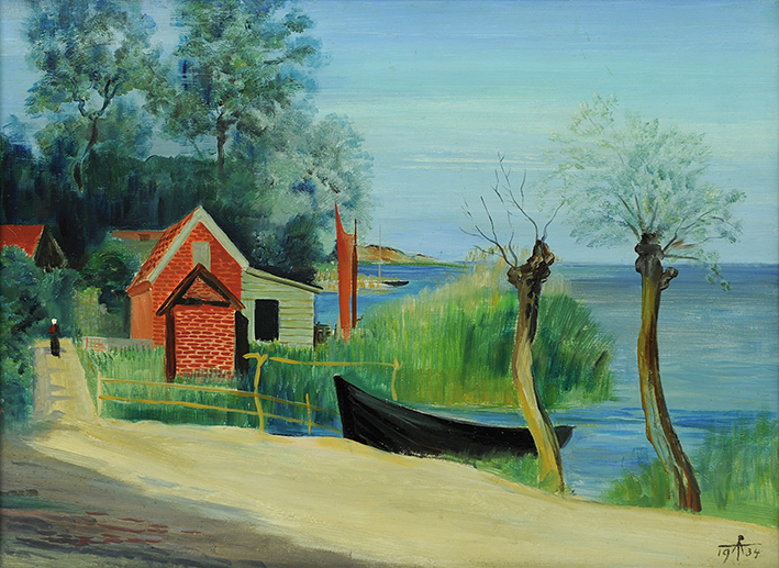 Uferlandschaft mit Fischerhütten und Booten (Pommern)