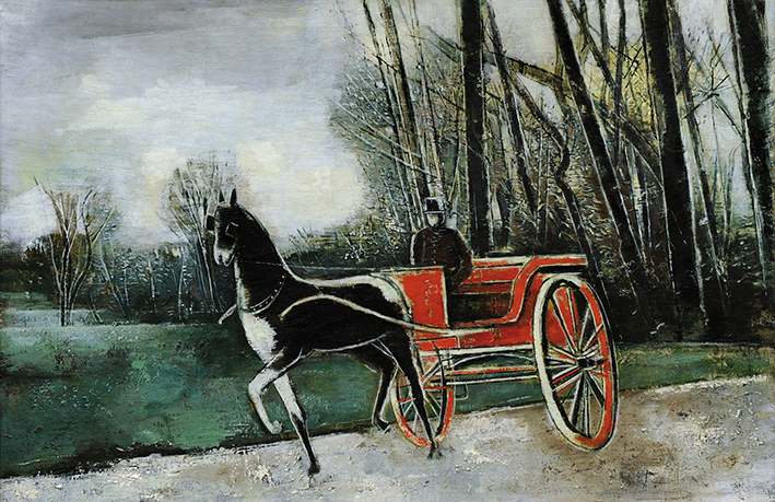 Pferd, Kutscher, Kutsche (Roter Wagen)