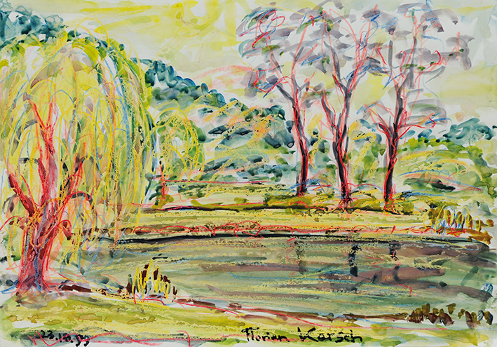 Flußlandschaft/Waldteich mit Bäumen